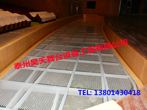 升降樂池設(shè)置在舞臺前沿部,為舞臺專用升降設(shè)備之一。它可以由不同高度變化,形成各種使用形式。對于大型劇院建議升降樂池分成前后兩塊。當(dāng)升到舞臺臺面高度時(shí),使舞臺的前沿部擴(kuò)展,增大舞臺表演區(qū),當(dāng)下降到與觀眾席前排地面高度時(shí),可用于增加觀眾席前區(qū)座位,當(dāng)下降一定高度時(shí),可形成不同深度地樂池,如果降到臺倉處,可運(yùn)送座椅車臺。